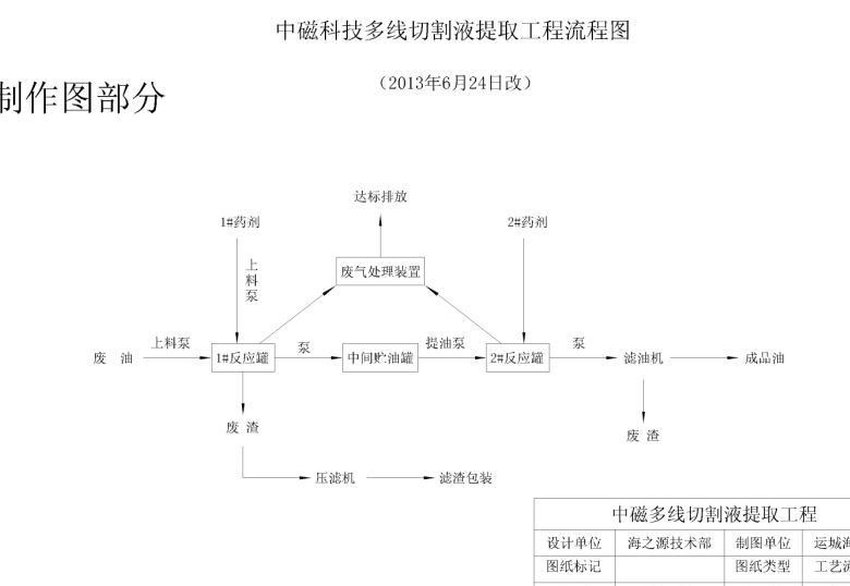 在實(shí)驗(yàn)室成功的基礎(chǔ)上,我公司設(shè)計(jì)了一套多線切割液提取工藝,對(duì)廢液中的多線切割液進(jìn)行回收再利用。